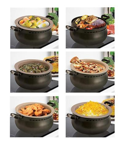 مزایای این سرویس غذاپز: اختراعی بی نظیر شامل مجموعه کاملی از کارایی های تمامی دستگاه ها وظروف پخت وپز آشپزخانه دریک ظرف صرفه جویی درمصرف سوخت تا پنجاه درصد صرفه جویی در زمان پخت وپزتا ۲۰درصد برابری حرارت داخل محفظه تنوری با تنورهای سنتی حفظ ارزش مواد غذایی بعلت نداشتن هیچگونه فشار(برخلاف زودپز) پخش یکنواخت حرارت از طریق محفظه تنوری به تمامی سطوح غذا مغز پخت شدن و پخت لذیذتر غذاها به دلیل قرار گرفتن ظرف در محفظه تنوری جلوگیری از خاموش شدن شعله دراثر سرریز غذا به دلیل نوع طراحی مهندسی ظروف قابل شستشو بودن تمامی قطعات هاردآنادایز دستگاه با سیم ظرفشوئی به جز داخل قابلمه و ماهیتابه کاربرد آسان تر و طبخ سریع تر درعین حال خودرنگ و زیبا،سبک ،کم مصرف ،کم حجم ،مقاوم، با کیفیت و بادوام باصرفه اقتصادی به دلیل بی نیاز شدن از سایر ظروف پخت و پز جا گیر و پرهزینه این دستگاه استثنایی علاوه برداخل خانه در بیرون از خانه ،(سفرهای کوتاه و طولانی،دراماکن تفریحی و سیاحتی،مناطق کوهستانی و...) به دلیل کاهش مصرف انرژی، جلوگیری از هدر رفتن سوخت، ذخیره کردن حرارت درداخل محفظه و پخت سریع تراز انواع غذاها، کاربرد فراوان دارد.